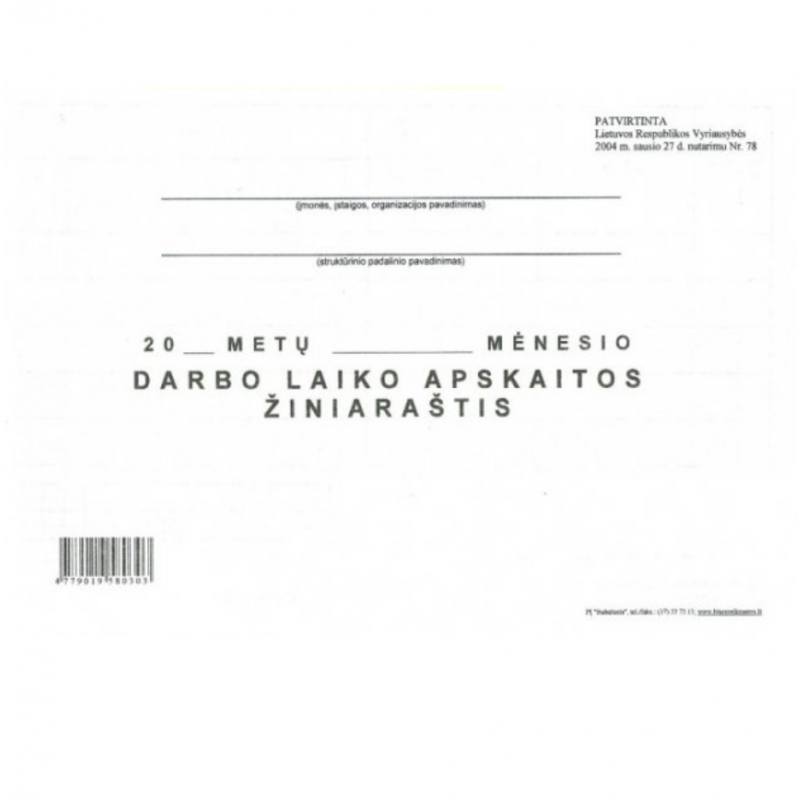 Darbo laiko apskaitos žiniaraštis A3 – Tiksli personalo kontrolė