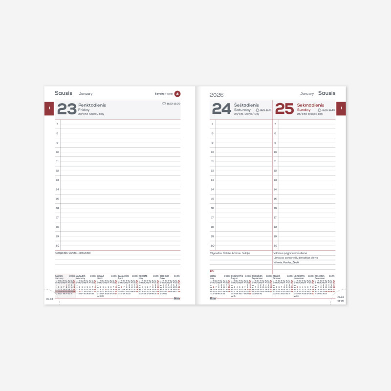 - Puslapių išdėstymas: Dieninis (1 diena/1 puslapis).