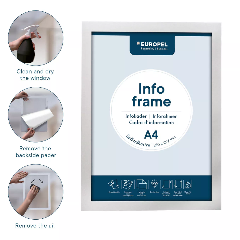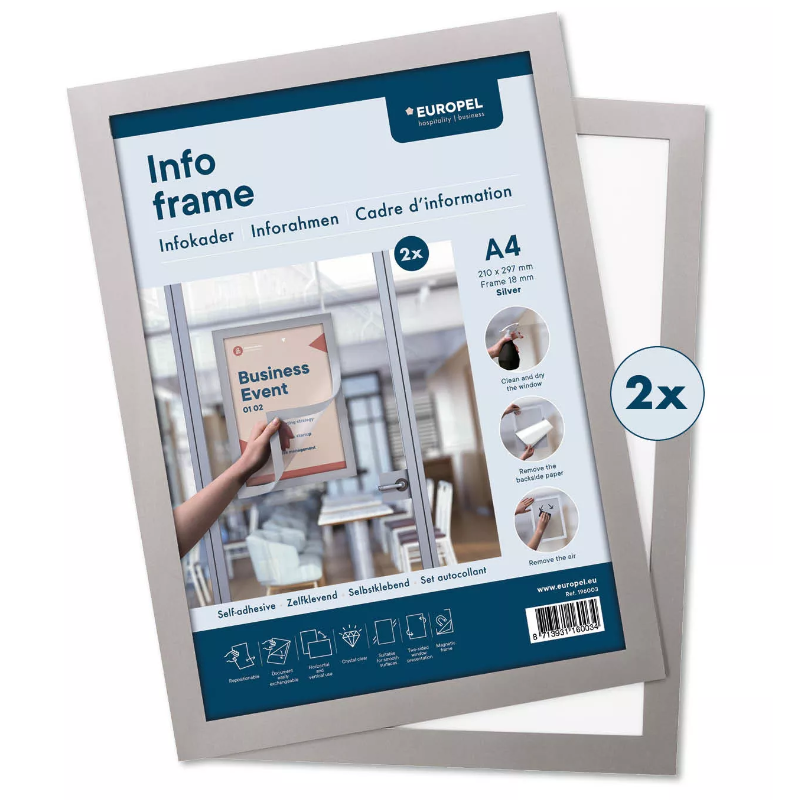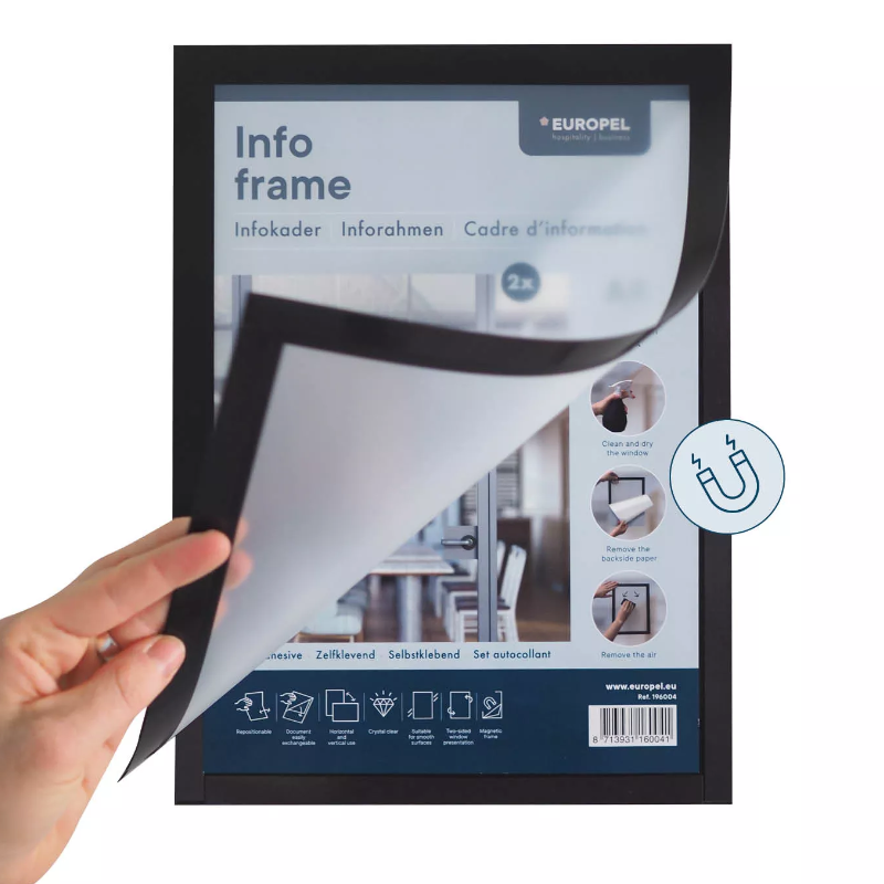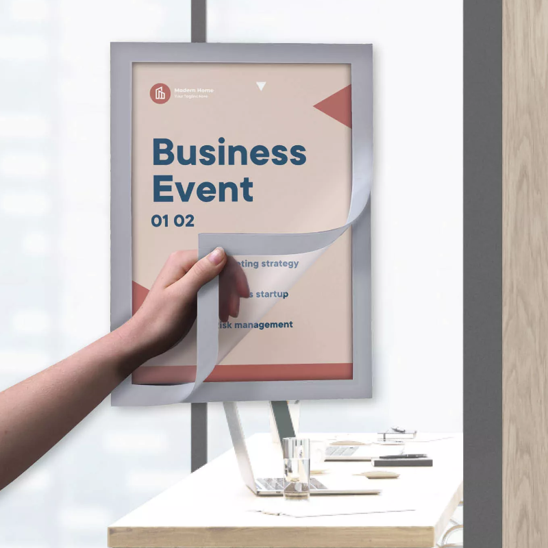 Pakabinamas reklaminis rėmas A2 (42x59,4) atlenkiamais 25mm krašteliais aliuminiu rėmu CLICK