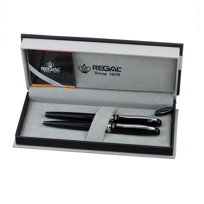 - Elegantiškas rašiklių rinkinys "REGAL" firmos, įpakuotas gražioje firminėje dėžutėje, kurį sudaro plunksnakotis ir tušinukas.