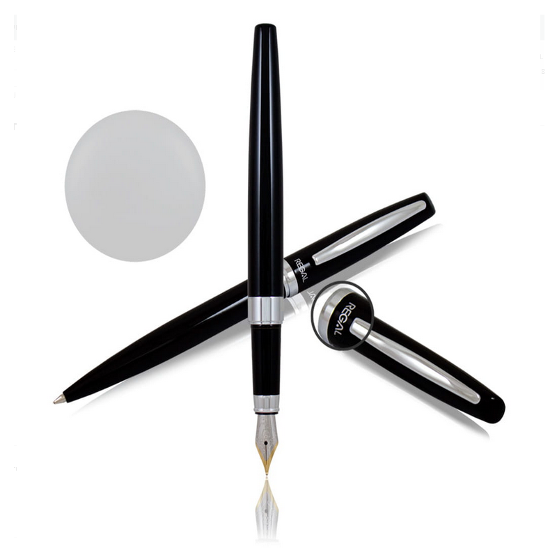 Rašiklių rinkinys REGAL plunksnakotis+tušinukas juodos sp.korpusas /sidabro sp.detalės