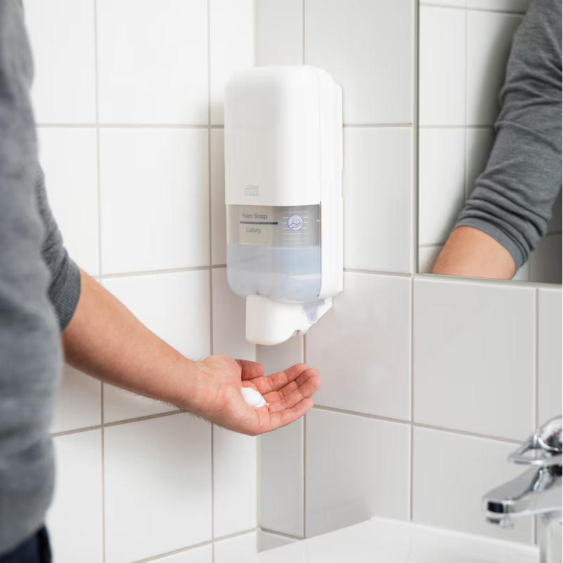 - Kontroliuojamas vartojimas: putų muilas gali sumažinti muilo sunaudojimą iki ~50% palyginti su skystuoju muilu.