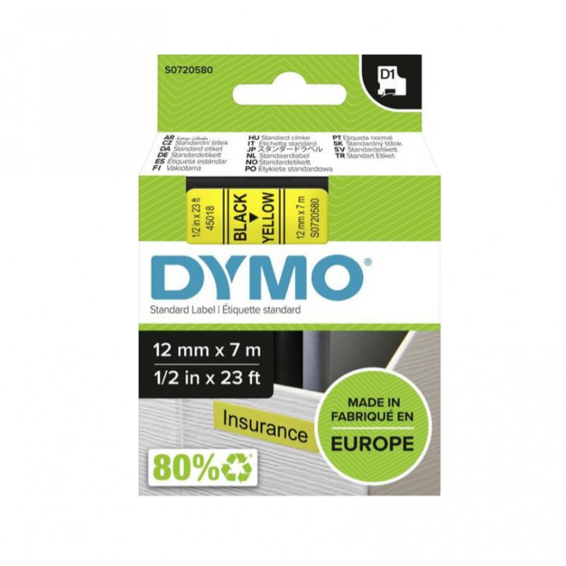 Juostelė DYMO D1 12mmx7m juoda/geltona S0720580