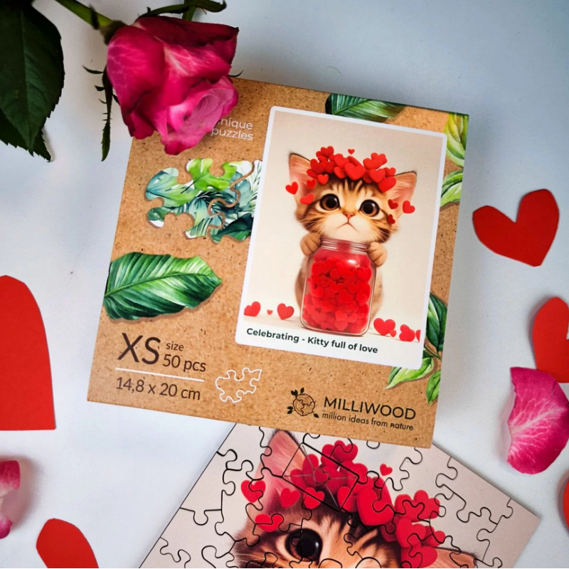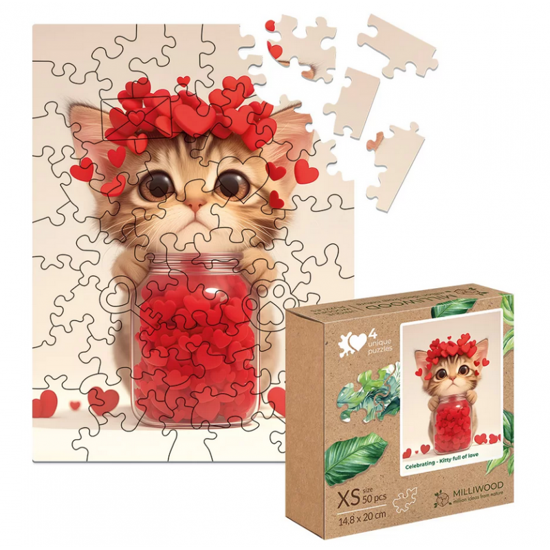 Medinė dėlionė MILLIWOOD, katytė, 50 detalių